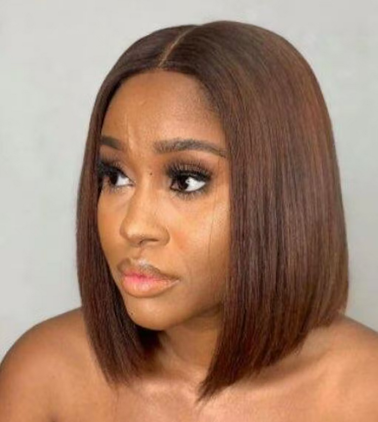 Lucy O. #4 Chocolate Brown Short Straight Bob 4x4/5x5 Lace Closure Wig Human Virgin Hair 150% Density