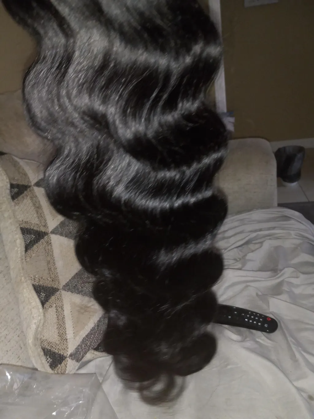 Ashanti H. I love love love this hair,it’s thick and beautiful,it curls and straightens really well.It does have a smell but other than I love it ❤️
